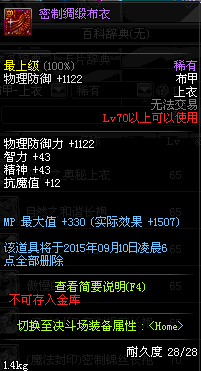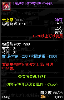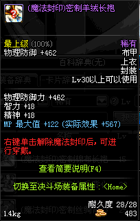 | 15 | (魔法封印)密制棉布长袍 | *Lv13~21普通地下城怪物掉落 *完成[魔法封印防具]摩根的研究(1/2) *使用Lv13~21怪物掉落的设计图进行制作 |