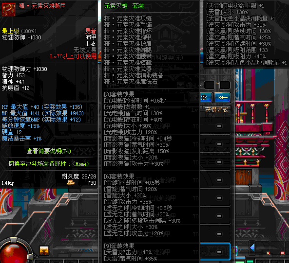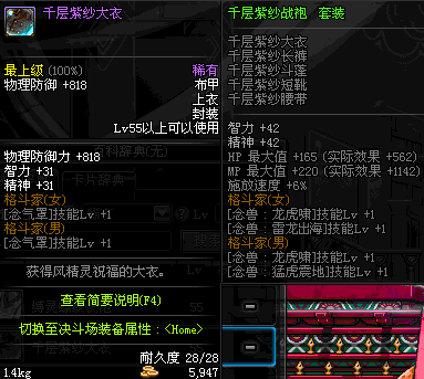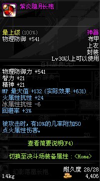 | 30 | 紫炎隐月长袍 | *Lv29~36普通地下城怪物掉落 *在加百利的神秘商店购买 |