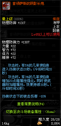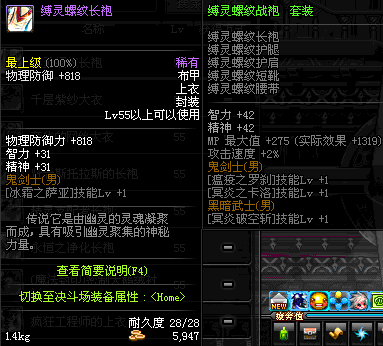| 80 | 幽魂魅影长袍 | *Lv79~86深渊地下城怪物掉落 | 幽魂魅影 套装 | |