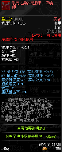 | 70 | 裂魂之异次元胸甲 - 召唤师 | |||