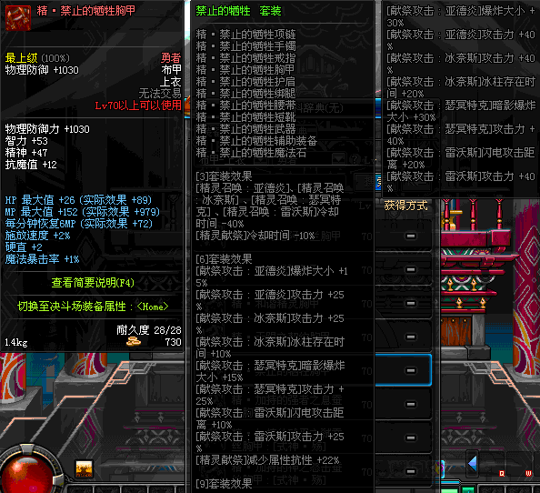 | 30 | 被诅咒的祭祀服 | *黑暗祭司德莉娜 掉落(英雄冢) *在NPC克伦特的物品店购买(阿拉德陨石×64) |