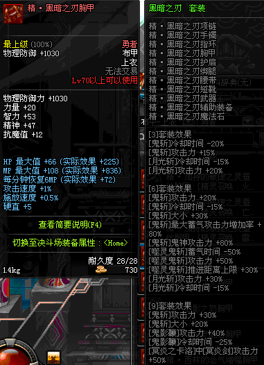 | 70 | 精·黑暗之刃胸甲 | |||
