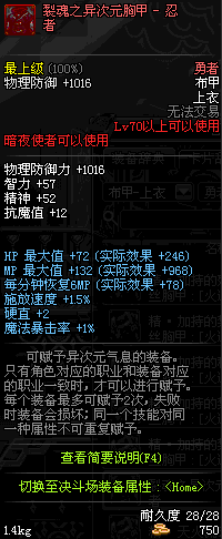 | 70 | 裂魂之异次元胸甲 - 忍者 | |||