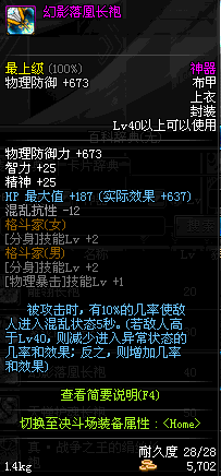 | 40 | 幻影落凰长袍 | *Lv39~46普通地下城怪物掉落 *在加百利的神秘商店购买 |