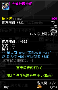 | 50 | 天蝉护魂长袍 | *Lv50~56普通地下城怪物掉落 *在加百利的神秘商店购买 |