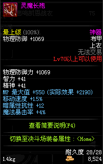 | 70 | 灵魔长袍 | *骷髅骑士 掉落(瘟疫之源) *在NPC西岚的物品店购买(银色陨石×284) |