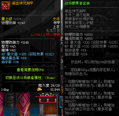 | 70 | 凝血神咒胸甲 | *Lv69~76深渊地下城怪物掉落 | 战场颤栗者 套装 | |
