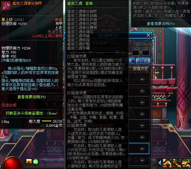 | 85 | 逝魔之疾咒长袍 | *Lv84~91深渊地下城怪物掉落 | 逝魔之力 套装 | |