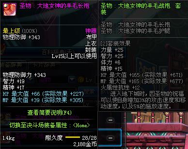 | 20 | 圣物 :荣耀的大地女神的羊毛长袍 | *Lv19~26普通地下城怪物掉落 | ||