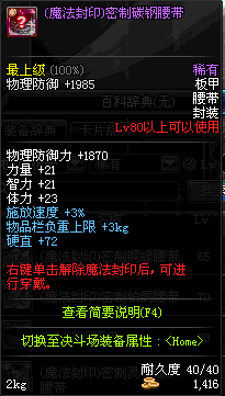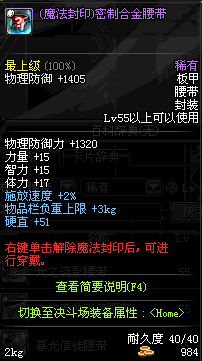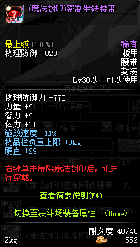 | 55 | (魔法封印)密制合金腰带 | *Lv53~61普通地下城怪物掉落 *完成[消灭邪龙]任务 *使用Lv53~61怪物掉落的设计图进行制作 |