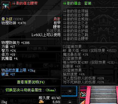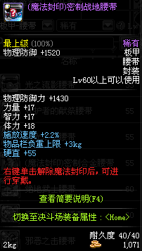 | 60 | 圣物 :荣耀的控魂女神的钛钢腰带 | *Lv58~66普通地下城怪物掉落 |