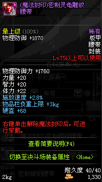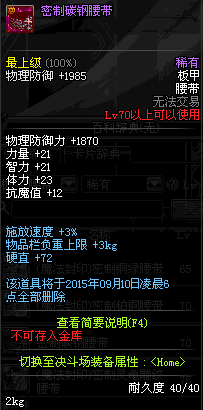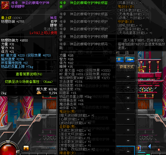 | 70 | 圣物 :荣耀的摩羯守护神的钛钢腰带 | *Lv70~76普通地下城怪物掉落 |