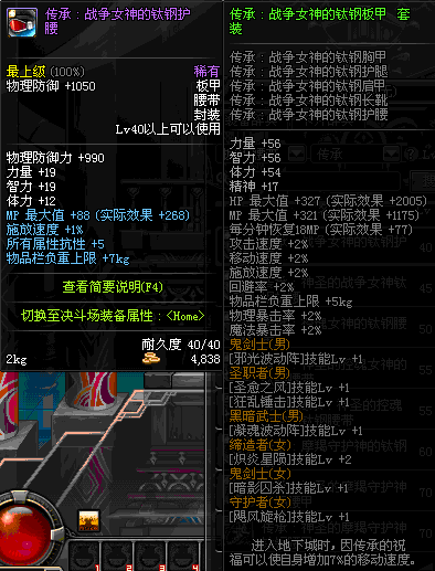 | 55 | 圣物 :控魂女神的钛钢腰带 | *Lv53~61普通地下城怪物掉落 |