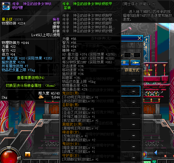 | 45 | 圣物 :战争女神的钛钢护腰 | *Lv45~51普通地下城怪物掉落 |