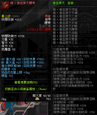 | 80 | 圣物 :天马守护神的钛钢腰甲 | *Lv80~86普通地下城怪物掉落 | ||