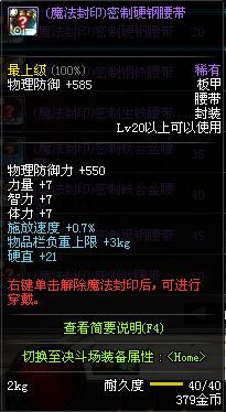 | 15 | (魔法封印)密制钢铁腰带 | *Lv13~21普通地下城怪物掉落 *完成[[魔法封印防具]天才武道家的试炼(2/3)]任务 *使用Lv13~21怪物掉落的设计图进行制作 |