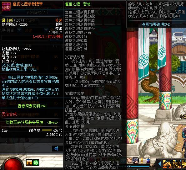| 85 | 霸域英豪腰带 | *Lv84~91深渊地下城怪物掉落 | 霸域英豪 套装 | |