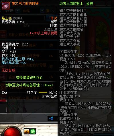 | 85 | 断肠绝伤之黑金腰带 | 昨日之巴斯顿 掉落 (在远古地下城里出没。) *从NPC鲁特的物品店出售的[断肠绝伤防具礼盒]中获得 |