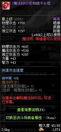 | 45 | (魔法封印)密制水晶长棍 | *Lv45~51普通地下城怪物掉落 *完成[罗斯特的破绽]任务 *使用Lv45~51怪物掉落的设计图进行制作 |