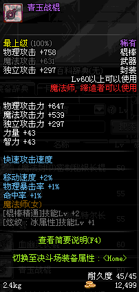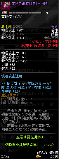 | 50 | 玉龙奔雷棍 | *Lv50~56普通地下城怪物掉落 *在加百利的神秘商店购买 |