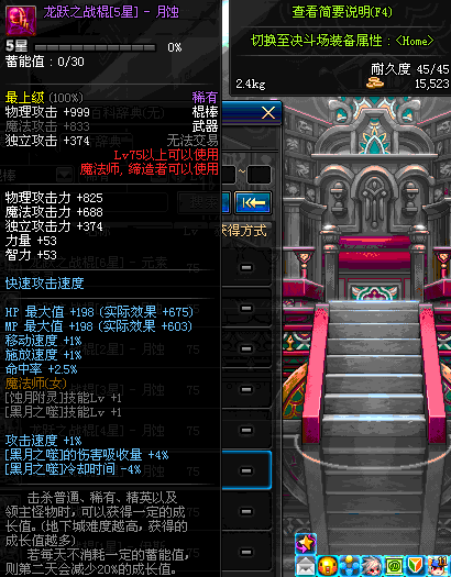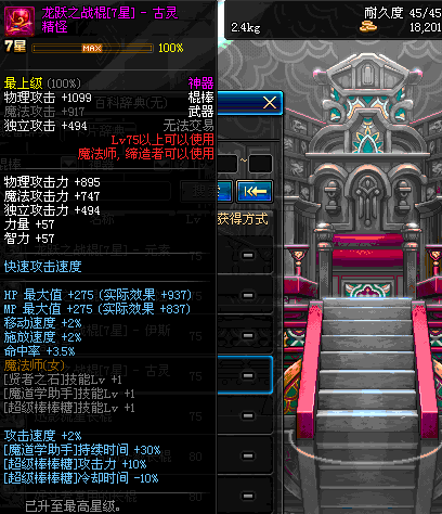 | 75 | 迅影流星长棍 | *Lv75~81普通地下城怪物掉落 *在加百利的神秘商店购买 |
