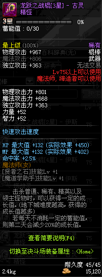 | 70 | 盘龙法棍 | *Lv70~76普通地下城怪物掉落 *在加百利的神秘商店购买 |