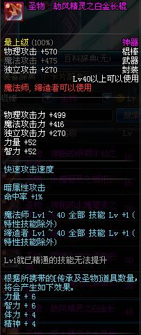 | 40 | 圣物 : 劫风精灵之白金长棍 | *Lv39~46普通地下城怪物掉落 |