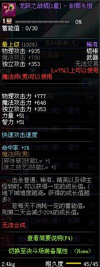 | 75 | 龙跃之战棍[4星] – 月蚀 | *完成二次觉醒任务后可以从NPC小铁柱处获得此道具。 | ||