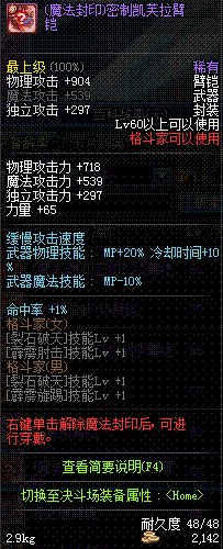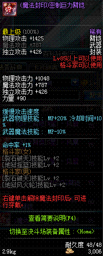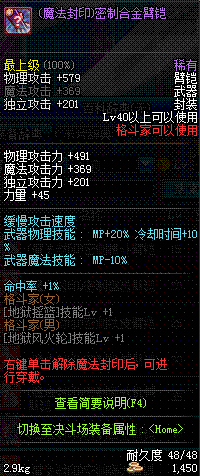 | 15 | (魔法封印)密制格斗臂铠 | *Lv13~21普通地下城怪物掉落 *完成[专职贺礼]任务 |