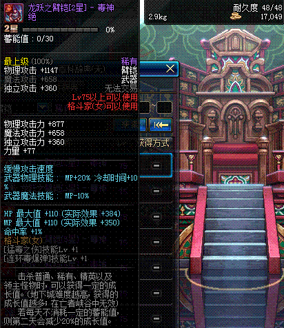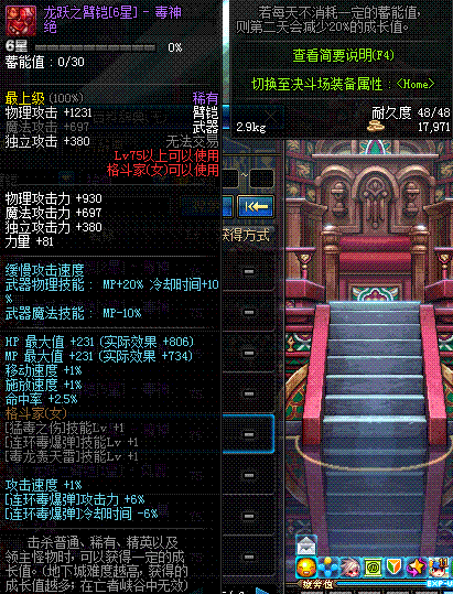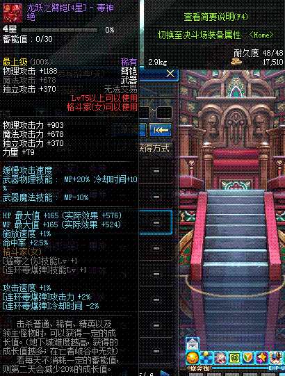 | 75 | 龙跃之臂铠[3星] - 毒神绝 | *完成二次觉醒任务后可以从NPC小铁柱处获得此道具。 | ||