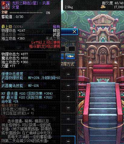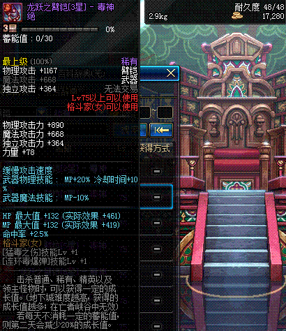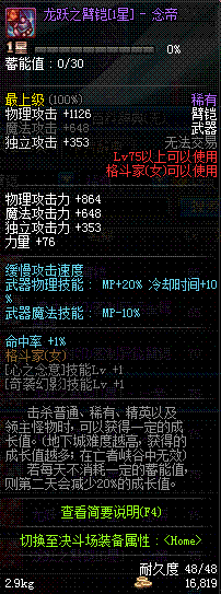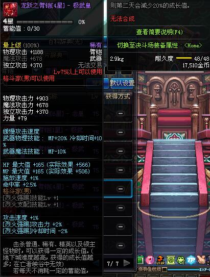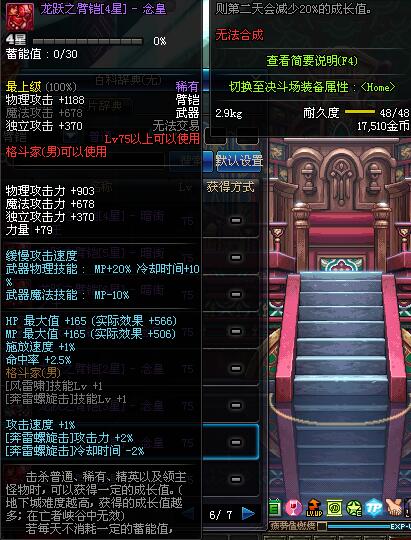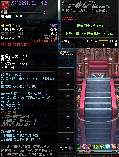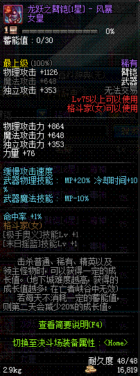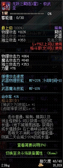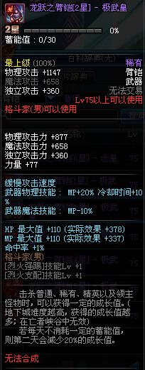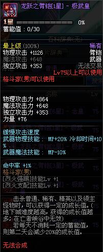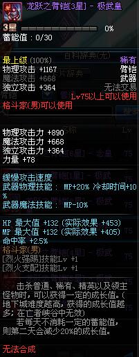 | 75 | 龙跃之臂铠[3星] - 极武皇 | *完成二次觉醒任务后可以从NPC小铁柱处获得此道具。 | ||