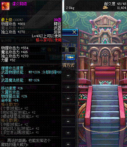 | 40 | 爆炎臂铠 | *Lv39~46普通地下城怪物掉落 *在加百利的神秘商店购买 |