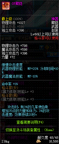 | 60 | OP臂铠 | *Lv58~66普通地下城怪物掉落 *在加百利的神秘商店购买 |
