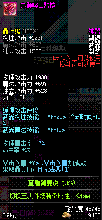 | 70 | 赤狮哮日臂铠 | *Lv70~76普通地下城怪物掉落 *在加百利的神秘商店购买 |