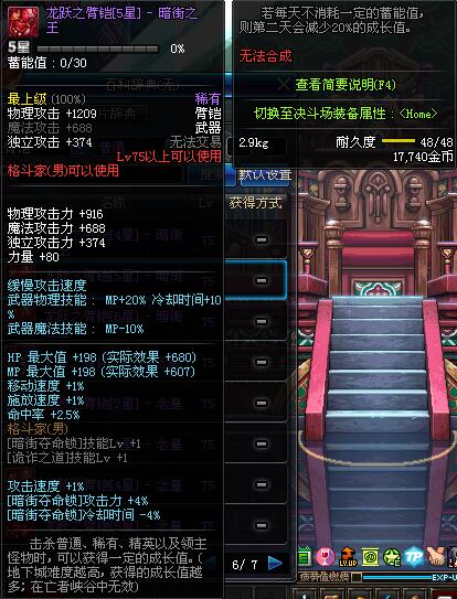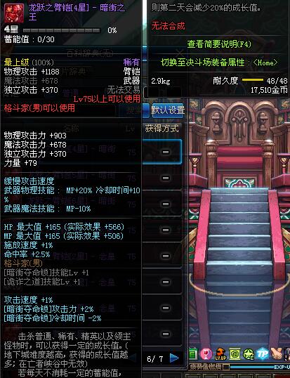 | 75 | 龙跃之臂铠[6星] - 暗街之王 | *完成二次觉醒任务后可以从NPC小铁柱处获得此道具。 | ||