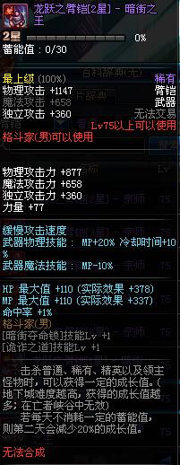 | 75 | 龙跃之臂铠[3星] - 极武圣 | *完成二次觉醒任务后可以从NPC小铁柱处获得此道具。 | ||