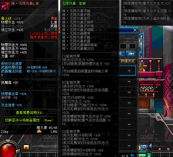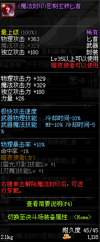 | 35 | 无边落雨匕首 | *Lv34~41普通地下城怪物掉落 *在加百利的神秘商店购买 |