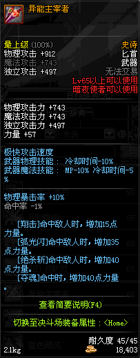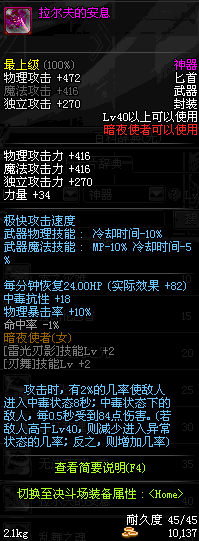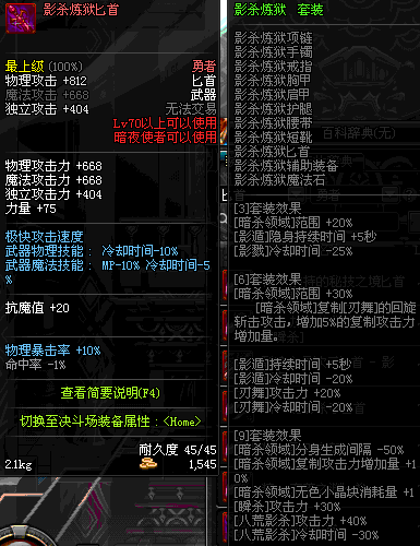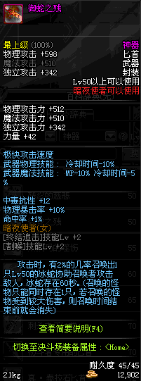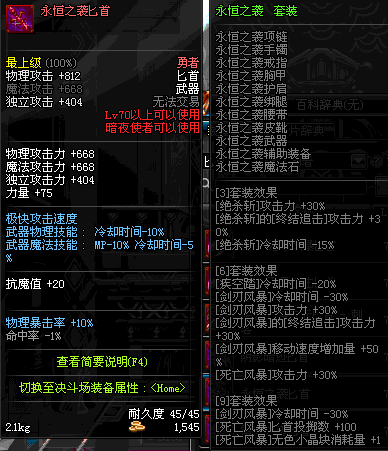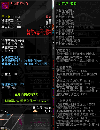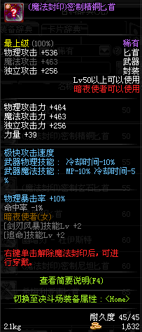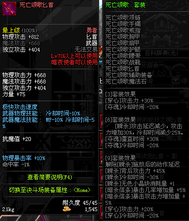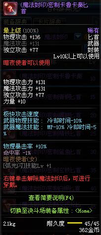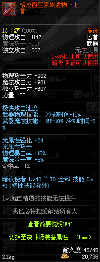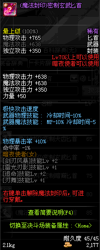 | 辅助装备: | 全职业 鬼剑士 女鬼剑 女格斗 男格斗 神枪手 女枪手 魔法师 男法师 圣职者 暗夜使者 守护者 |