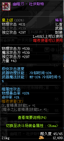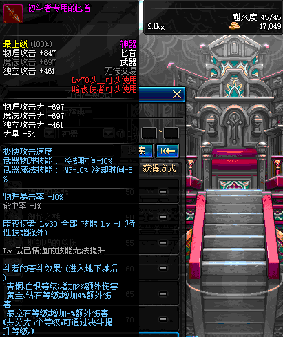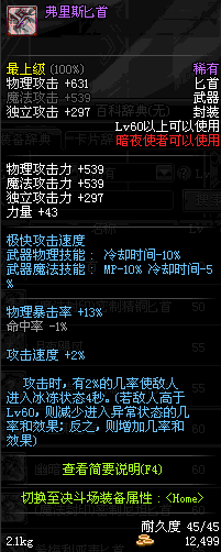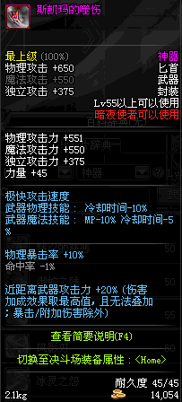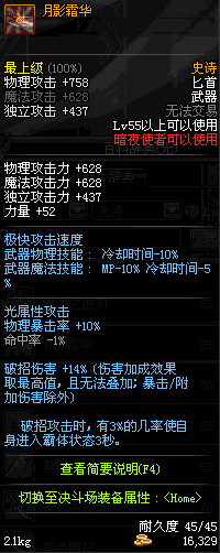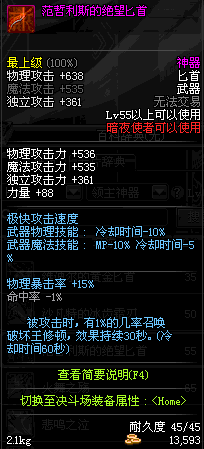| 55 | 范哲利斯的绝望匕首 | *范哲利斯 掉落(无尽的噩梦) *在NPC敏泰的物品店购买(阿拉德陨石×330) |