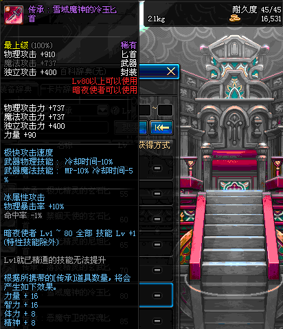 | 80 | 圣物 : 雪域魔神的冷玉匕首 | *Lv80~86普通地下城怪物掉落 | ||