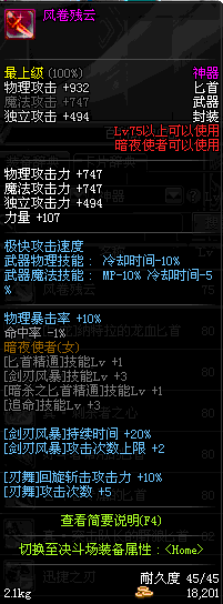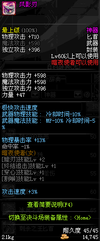 | 60 | 风影刃 | *Lv58~66普通地下城怪物掉落 *在加百利的神秘商店购买 |