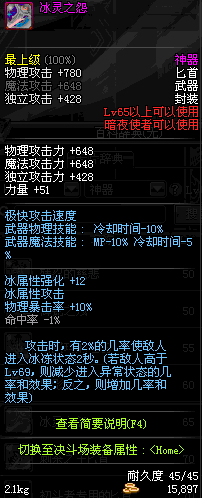 | 65 | 冰灵之怨 | *Lv65~71普通地下城怪物掉落 *在加百利的神秘商店购买 |