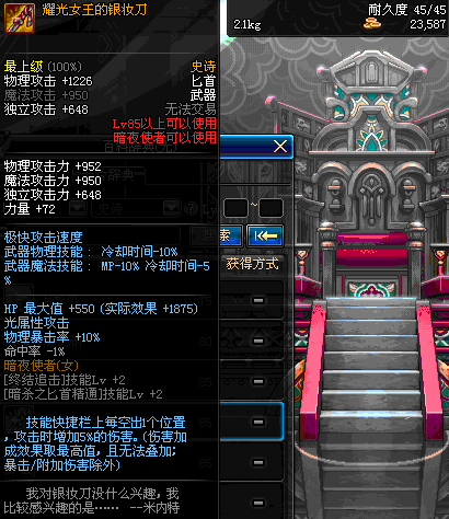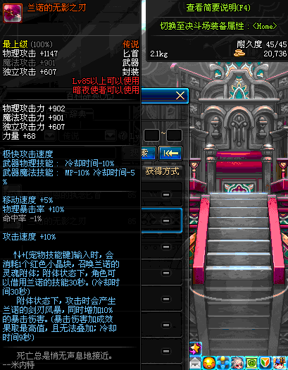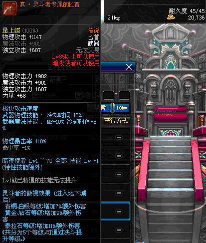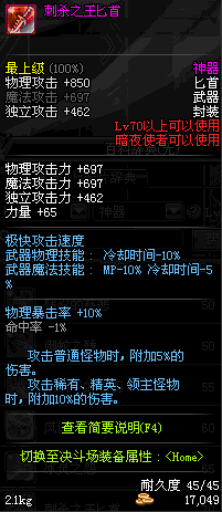| 70 | 刺杀之王匕首 | *Lv70~76普通地下城怪物掉落 *在加百利的神秘商店购买 |