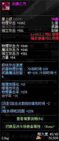 | 65 | (旧)月影刃 | *Lv64~71深渊地下城怪物掉落 *在NPC沉默之克雷娅的物品店购买 |