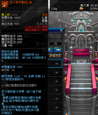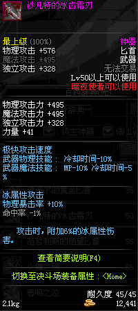 | 45 | 圣物 : 玄冰精灵的爱巴伦匕首 | *Lv45~51普通地下城怪物掉落 |