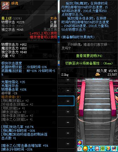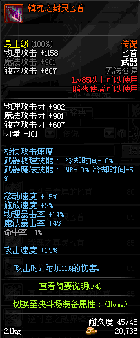 | 85 | 镇魂之封灵匕首 | *时空之门地区 - 吟游诗人艾丽丝 出售 (镇魂之石×100) *购买镇魂武器礼盒(低级镇魂之石×140) |