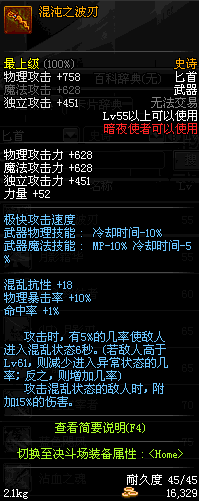 | 55 | 混沌之波刃 | *Lv54~61深渊地下城怪物掉落 *在NPC沉默之克雷娅的物品店购买 |