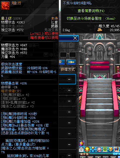 | 75 | 月影刃 | *银光魔法团 掉落(在时空之门地区的深渊地下城出没。) | ||