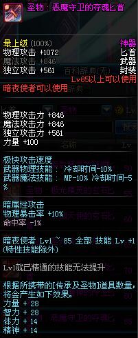 | 85 | 圣物 : 恶魔守卫的夺魂匕首 | *Lv85~91普通地下城怪物掉落 | ||