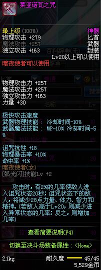| 20 | 莱亚诺瓦之咒 | *Lv19~26普通地下城怪物掉落 *在加百利的神秘商店购买 |
